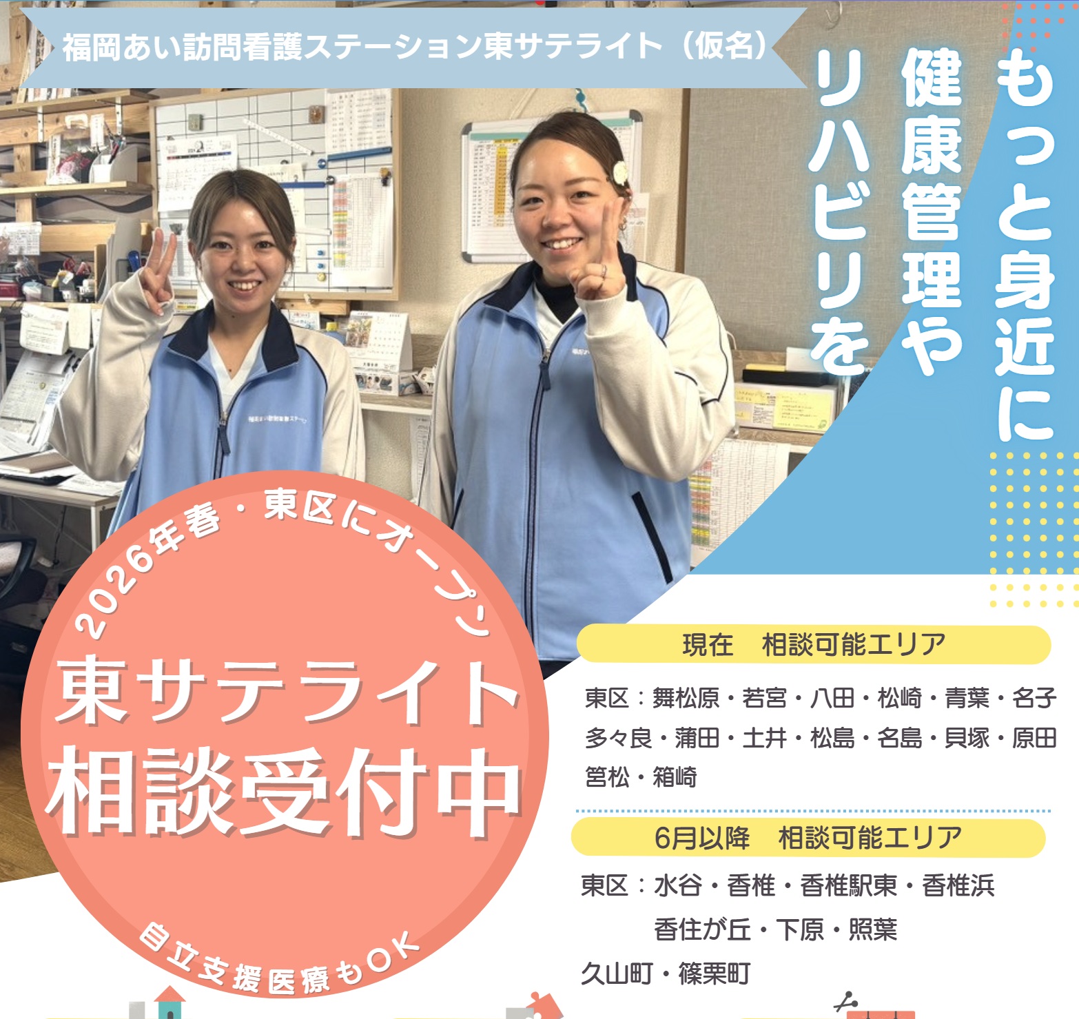 | 事業所名 | 福岡あい訪問看護ステーション (2024年1月11日より事業署名変更) 旧)合同会社アイディーイーあい訪問看護ステーション |